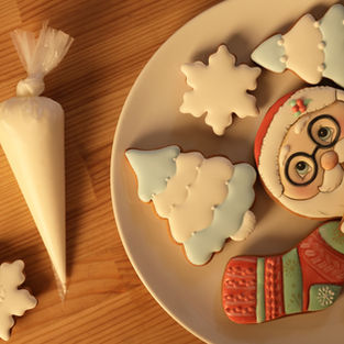 12 seasonal cookies | cookie icing | 2 fancy seasonal sprinkles | seasonal candy | standard shipping | card-stock with printed note from sponsor |